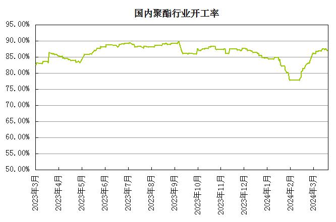 需求端由于终端企业订单下达缓慢且库存较高,对聚酯需求支撑不足,使得聚酯行业开工率变化不大维持在86%附近,对PTA需求有效提振。下游需求恢复不及预期,加之终端工厂前期原料备货充足,对聚酯刚需采购为主,导致聚酯工厂库存不断累积,行业供应压力逐步加大。但传统需求旺季之下,需求仍存在一定的回暖预期。