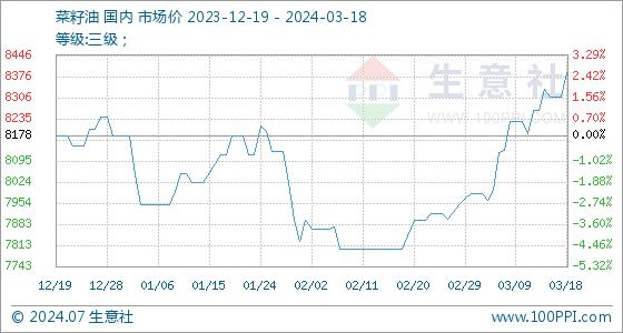 3月18日生意社菜籽油基准价为8308.33元/吨