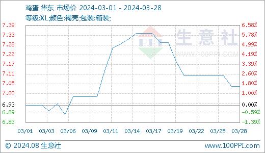 据生意社商品行情分析系统监测:本月初鸡蛋价格为6.93元/公斤,本月末鸡蛋价格为7.04元/公斤,价格上涨1.59%。