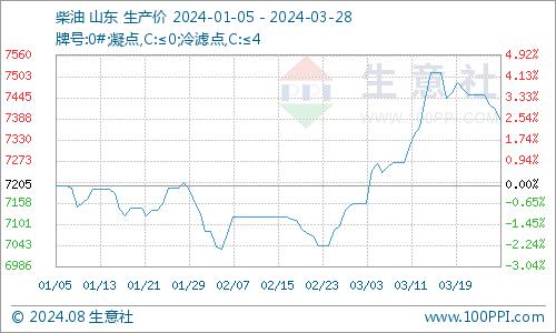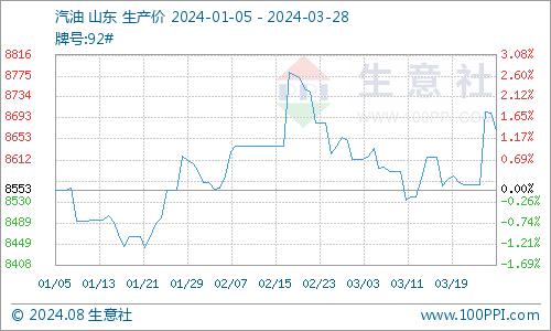 据生意社商品行情分析系统,3月国内地炼汽柴油价格行情均有所上涨,柴油涨幅较大,截止月末国内92#汽油价格为8670.2元/吨,3月价格上涨0.67%;国内0#柴油价格为7381.6元/吨,3月价格上涨3.15%。