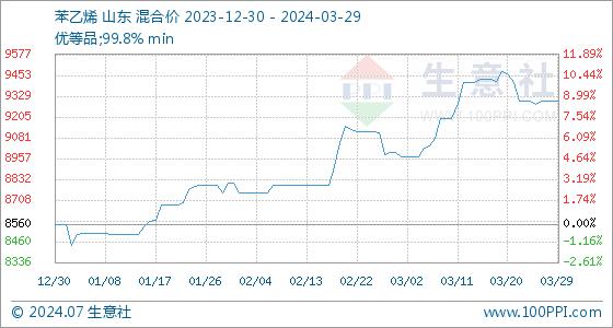 3月29日生意社苯乙烯基准价为9300.00元/吨