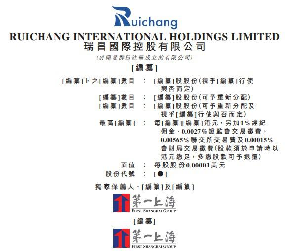 据港交所3月28日披露,瑞昌国际控股有限公司(以下简称:瑞昌国际)递表港交所主板,第一上海证券为其独家保荐人。据悉,该公司曾分别于2023年3月20日、2023年9月28日向港交所主板递交过上市申请。