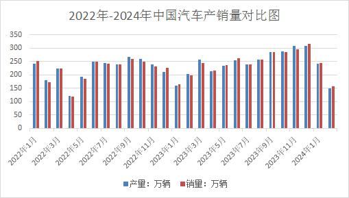 工信部数据显示:2024年2月我国汽车产销分别完成150.6万辆和158.4万辆,同比分别下降25.9%和19.9%。
