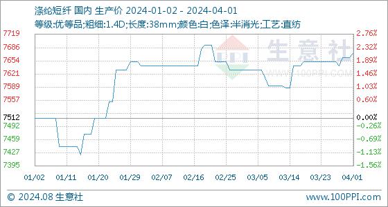 4月1日生意社涤纶短纤基准价为7662.00元/吨