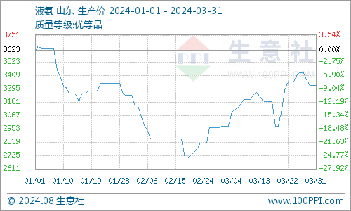 3月液氨价格震荡上涨,氯化铵成本支撑较强。据生意社商品行情分析系统显示截至3月28日国内液氨价格在3323元/吨,较3月初的2976元/吨上涨了11.65%。3月下半月国内厂商整体开工率明显下滑,尤其是北方主产区放氨量较之上周萎缩近6%左右。周中以来山东华鲁尿素装置恢复,部分转尿素生产,放氨量明显减少。另外,山东联盟、鲁洲装置仍在检修期,市场氨量表现吃紧,叠加河南、安徽、东北多地均有多套装置检修。生产企业普遍出现车辆排队等货现象。液氨出厂价自然屡次上调。山东地区厂家周内普遍上调2-3次,累计调幅在300-400元/吨。市场表现供不应求。