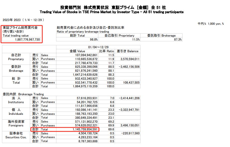2023年海外投资者在日本股市交易总额占比情况 图片来源:日本交易所集团