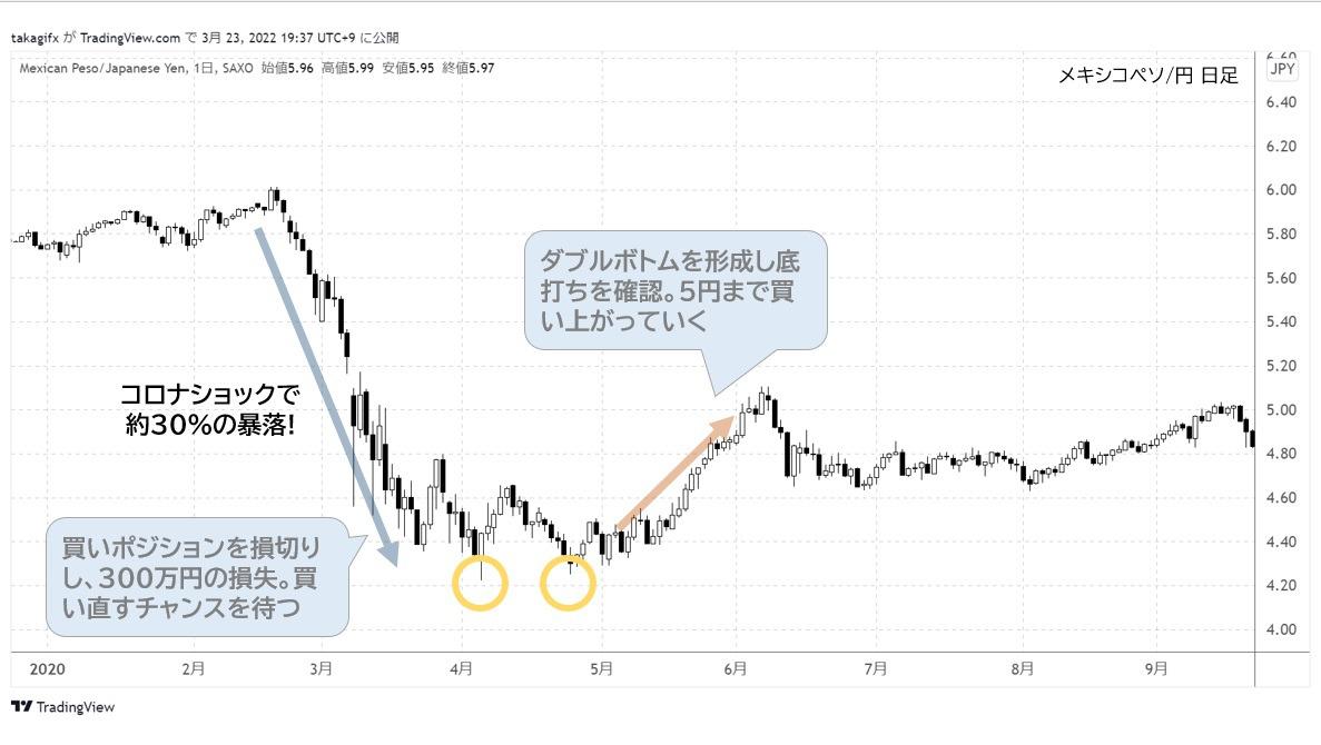 之后,他开始瞄准墨西哥比索/日元的交易,并将杠杆加到10倍左右。2020年4月~5月期间,墨西哥比索兑日元汇率跌至低点,高桥逢低买入。“我每周一上午10点定期买入25万,即使在市场暴跌的情况下,我也继续买入,(到现在)总共买入了5200万。每天产生36000日元的被动收入。”他当时在接受媒体采访时说道。