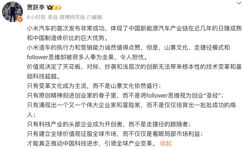 而在这场价格战中,一个意外的角色悄然出现。那就是曾经风光无限的乐视网创始人贾跃亭。近日,贾跃亭通过其旗下的法拉第汽车(Faraday Future,简称FF)宣布进军新能源汽车市场,并计划推出一款与XIAOMI SU7定位相似的车型。贾跃亭突然插足,锐评小米汽车:营销能力值得点赞,山寨文化令人担忧;只有建立全球价值观征服全球市场,而不仅仅是着眼局部市场利益,才能真正推动中国科技进步,引领全球产业变革,无疑给这场价格战增添了几分变数。