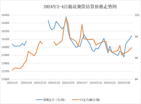 北半球棉花种植季临近,主产国植棉情况引起市场关注。美国农业部报告显示,美棉新年度意向种植面积1067.3万英亩,同比增加4.3%,低于2月份美国农业展望论坛1100万英亩的植棉面积预测,2023年最终棉花种植面积为1023万英亩。美国意向植棉面积下滑、最近一周美棉出口数据较好,叠加近期国际油价上涨提振市场,ICE期棉行情止跌回升,截至1日,主力合约结算价为92.76美分。