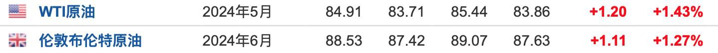 3.截至发稿,WTI原油涨1.43%,报84.91美元/桶。布伦特原油涨1.27%,报88.53美元/桶。