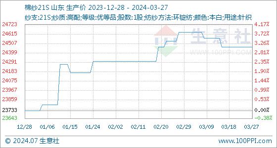 3月27日生意社棉纱21S基准价为24466.67元/吨