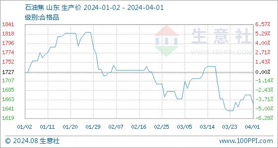 4月1日,生意社石油焦基准价为1675.00元/吨,与上月初(1682.50元/吨)相比,下降了-0.45%。