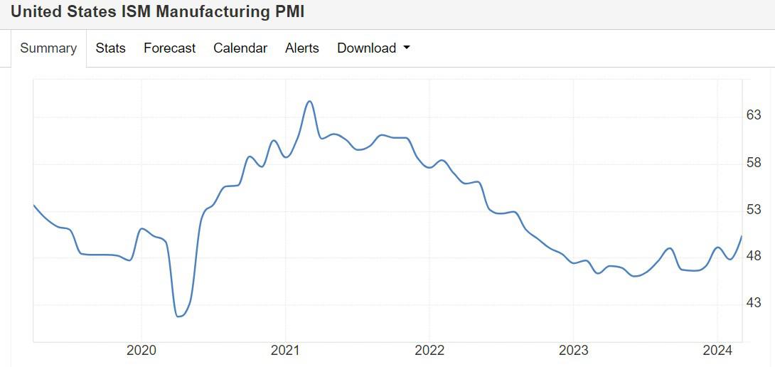 最新的统计数据显示,美国3月ISM制造业PMI为50.3,远超经济学家们普遍预期的48.4,以及47.8这一前值,这一数据标志着美国制造业在经历长达16个月的收缩后首次超过50这一关键荣枯线点位,意味着美国制造业扩张之势。中国3月制造业PMI较2月回升1.7个百分点至50.8,为2023年9月以来首次回到50荣枯线以上。