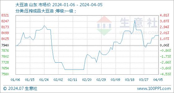 4月5日生意社大豆油基准价为8070.00元/吨