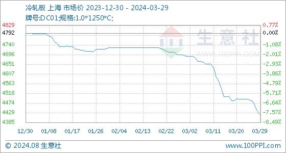 3月29日生意社冷轧板基准价为4432.50元/吨