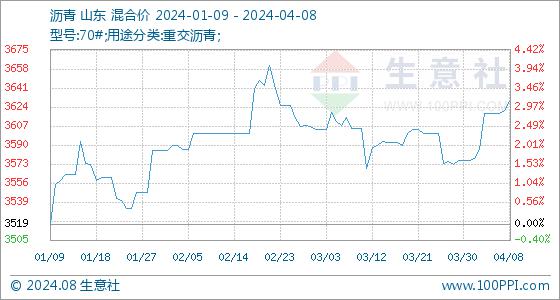 4月8日,生意社沥青基准价为3620.86元/吨,与本月初(3576.57元/吨)相比,上涨了1.24%。