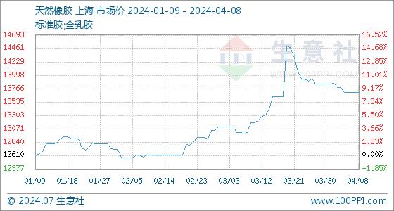4月8日生意社天然橡胶基准价为13700.00元/吨