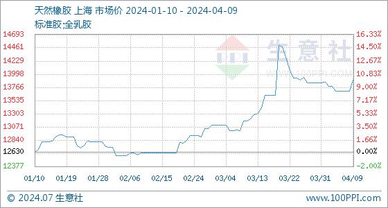 4月9日生意社天然橡胶基准价为13700.00元/吨