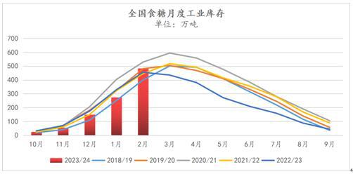 按照现在各产区的生产进度来看,2023/2024榨季国产糖产量最终落地约为1000万吨左右,较上榨季增加约100万吨;而4月份作为消费淡季,预期国产糖产销率或将放缓。