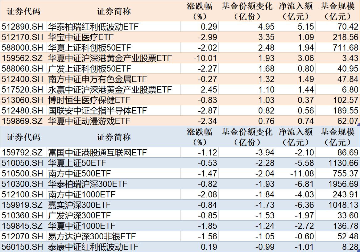 红利低波ETF份额创新高,中证500ETF净流出逾11亿元