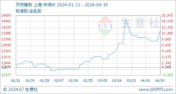 4月10日生意社天然橡胶基准价为13890.00元/吨