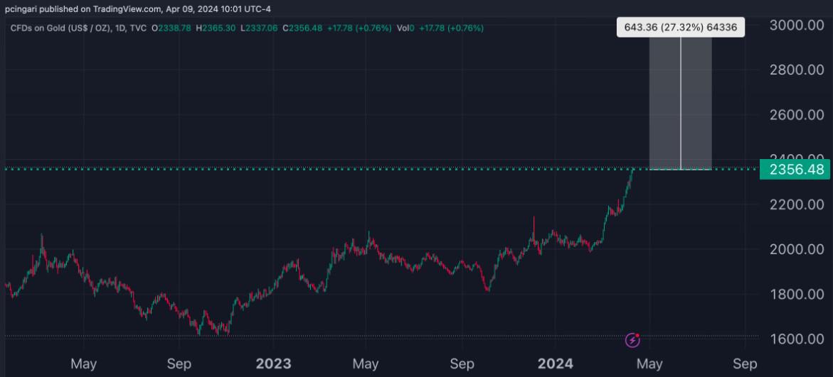 Widmer表示:“如果美联储最终开始降息,投资者应该会重返市场。”我们之前提出,如果美联储在第一季度降息,金价预估为2400美元/盎司;我们现在提高了这一预期,预计到2025年金价将上涨至3000美元/盎司。”