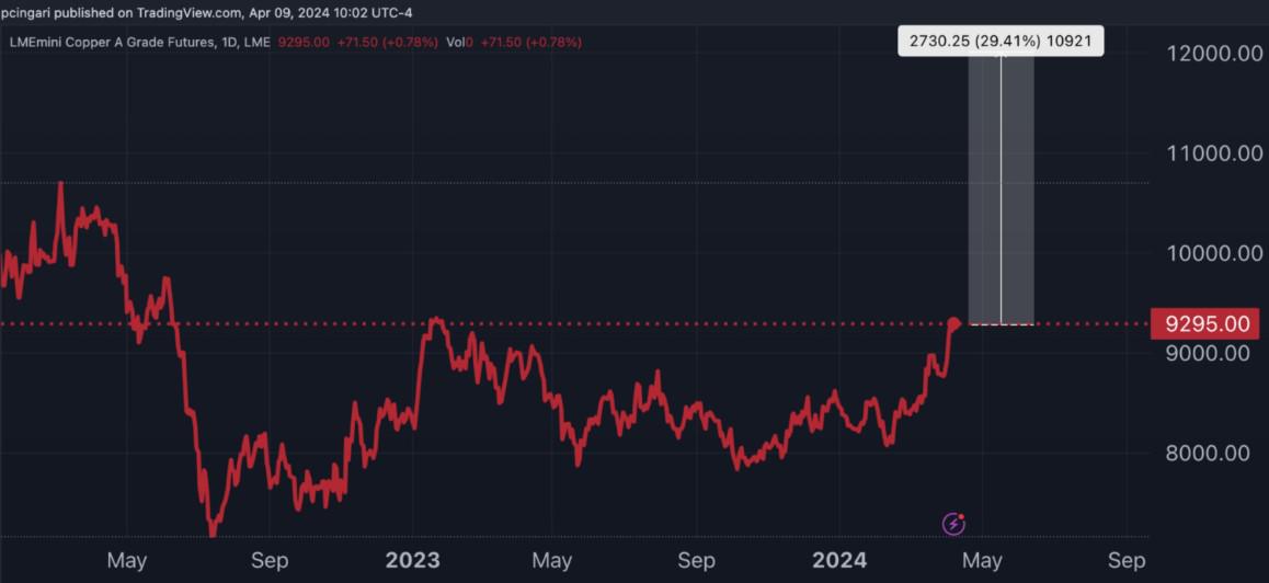 乐观情绪不仅限于贵金属,美国银行也对潜在的铜供应危机拉响了警报。根据Widmer的说法,“原材料越来越随自己的节奏起舞”,而铜被视为“能源转型的震中”。该行预计,在绿色技术投资、库存减少和全球经济复苏等多种因素的推动下,铜价将大幅上涨;预计2025年铜价平均为每吨10,750美元,2026年将攀升至每吨12,000美元。