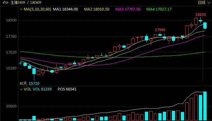 经过前期持续上涨后,近日生猪盘面出现下跌,尤其是昨日下跌幅度较大,主力合约2409截至收盘下跌1.92%,与此同时,近月合约2405、2407表现疲软,分别下跌1.67%和2.8%。