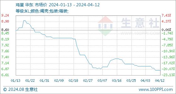 4月12日生意社鸡蛋基准价为6.83元/公斤