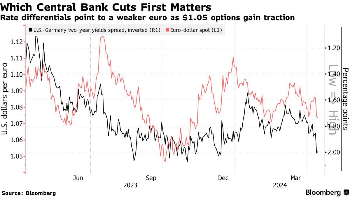 Jefferies驻纽约外汇主管Brad Bechtel表示:“欧元兑美元汇率跌至1.07告诉我们,目前市场的想法是6月份降息。突破这一水平将是迈向1.05的重要一步。”他补充道,欧元可能会在欧洲央行开始放松货币政策前后触及这一水平。
