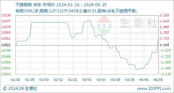 4月15日生意社不锈钢板基准价为12724.29元/吨