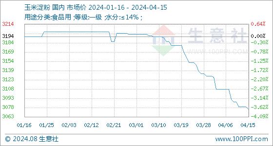 4月15日生意社玉米淀粉基准价为3080.00元/吨