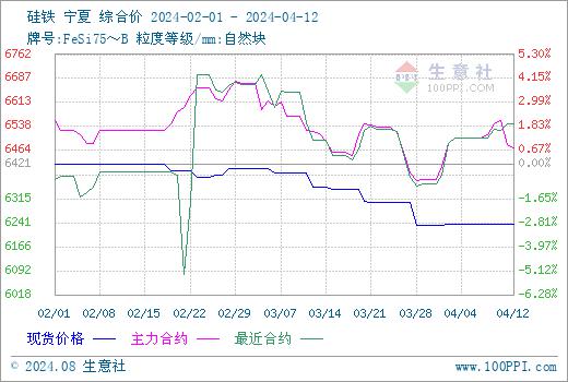 随着河钢招标价格确定,市场方向明朗后,除各大钢厂相继进行4月硅铁招标采购外,零售端需求状况也是稍有好转、原料价格传出上调消息成本端仍有一定支撑,随着利好信息不断增加,本周业内信心有增,部分工厂报价小幅上调,市场低价货源难寻,且多数表示,当前处于钢招需求释放之际,整体行情或存在一定的抗跌性,且有稳中小幅上调可能。据生意社商品行情分析系统,4月12日硅铁(牌号:FeSi75~B;粒度等级/mm:自然块)宁夏地区市场报价在6100-6350元/吨。