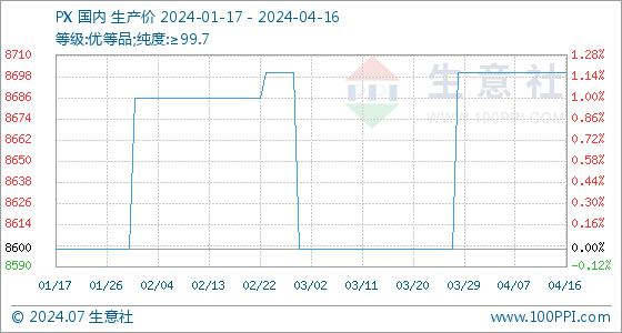 4月16日,生意社PX基准价为8700.00元/吨,与本月初持平。