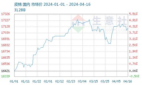4月16日中国棉花指数3128B级均价17153元/吨,较上一交易日上涨37元/吨。