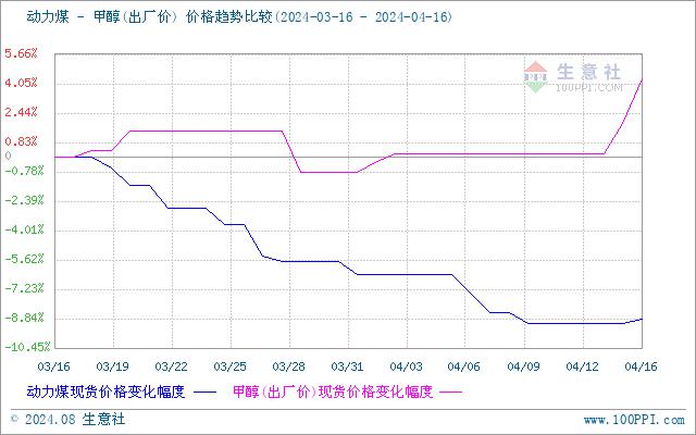 生意社煤炭/动力煤(上游原料)-甲醇价格走势比较图: