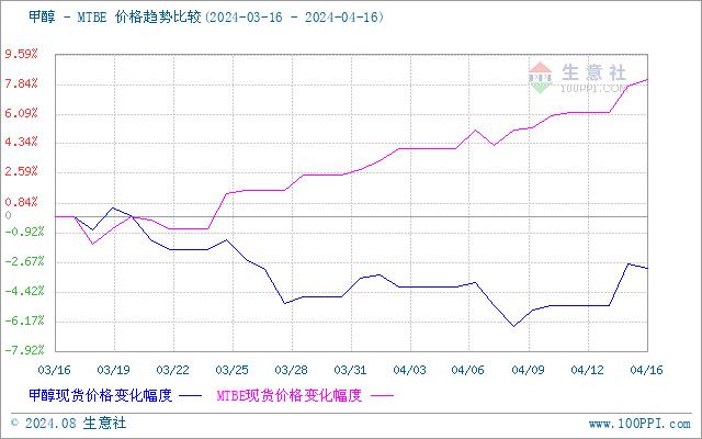 生意社甲醇-MTBE(下游产品)价格走势比较图: