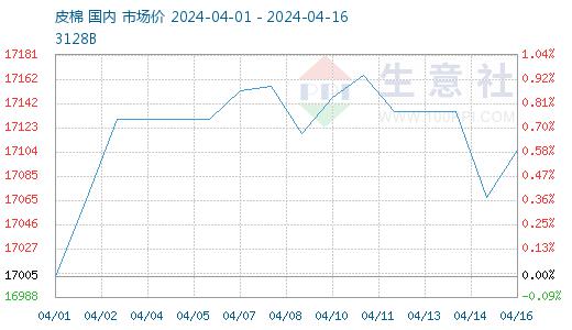 4月上半月,国内棉花行情窄幅震荡,棉花现货报价跟随郑棉波动,总体维持偏强走势。据生意社商品行情分析系统,4月16日3128B级皮棉现货价格在17105元/吨,较月初上涨0.59%。