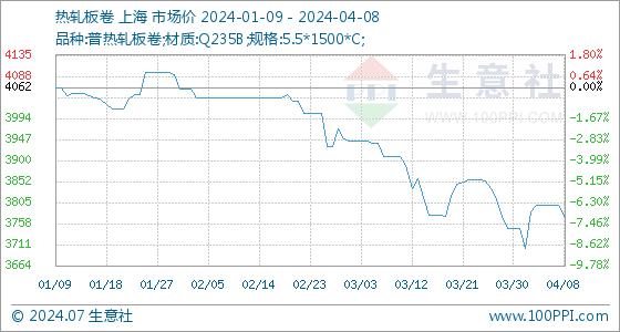4月8日生意社热轧板卷基准价为3800.00元/吨
