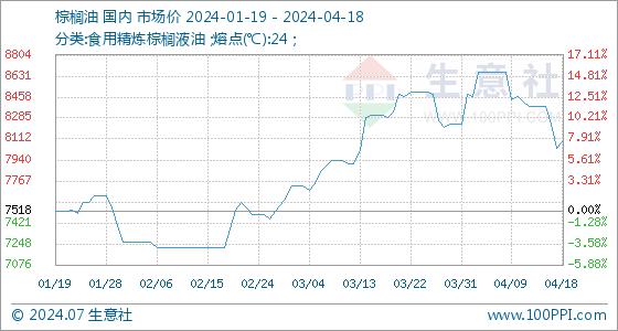 4月18日生意社棕榈油基准价为8038.00元/吨