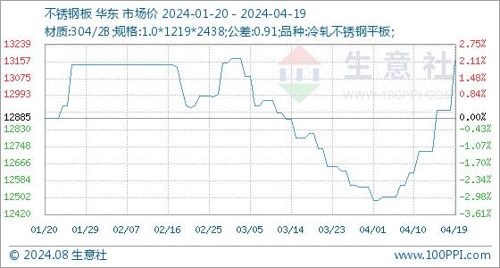 4月19日生意社不锈钢板基准价为12921.43元/吨