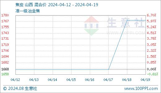 据生意社商品行情分析系统:2024年4月12日至4月19日山西地区焦炭市场首轮提涨落地,截止4月19日准一级冶金焦出厂价格1770元/吨,涨6.09%。