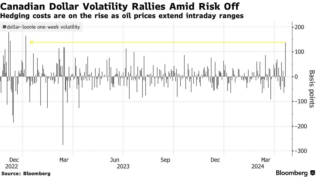 随着布伦特原油在周五早上一度升至每桶90美元上方,与石油相关货币的波动率也加剧。加元一周波动率的对冲成本在周五创下15个月以来的最大涨幅,而挪威克朗的波动率也创下今年以来第二大涨幅。