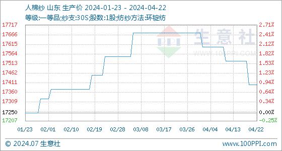 4月22日生意社人棉纱基准价为17400.00元/吨