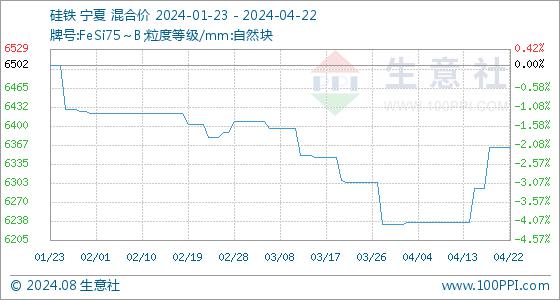 4月22日生意社硅铁基准价为6364.29元/吨