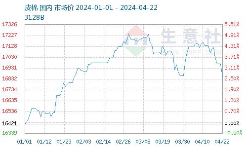 4月22日中国棉花指数3128B级均价16857元/吨,较上一交易日下跌157元/吨。