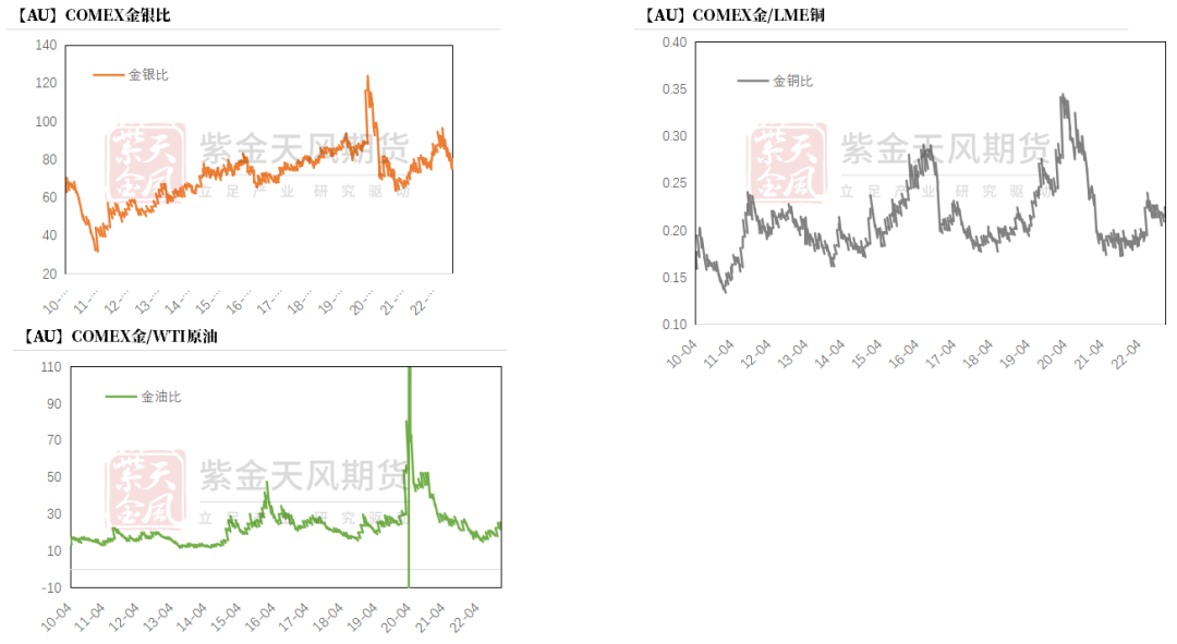 金银比震荡走低,主要因为上周黄金上涨幅度小于白银;金铜比小幅走低,主要因为上周黄金上涨幅度小于铜;金油比环比走高,主要因为布油下跌、黄金上涨。
