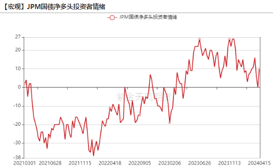 JPM国债净多头投资者情绪转向,较上周偏多。
