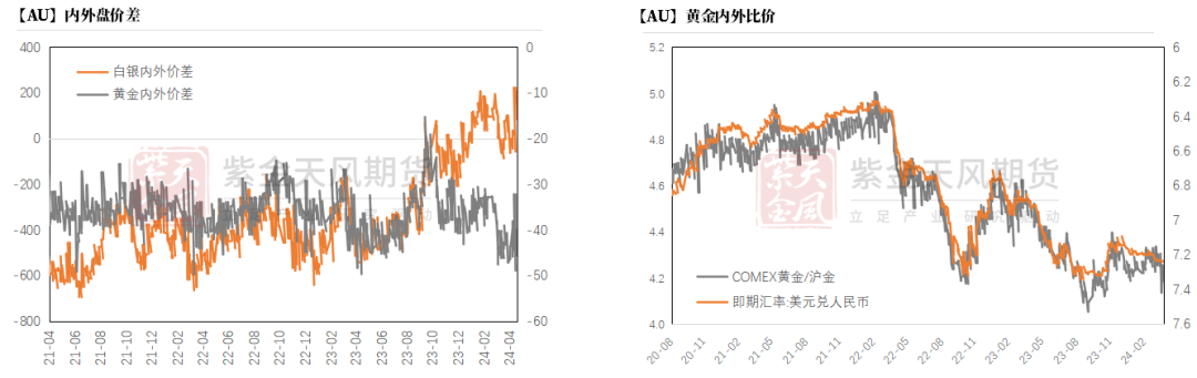 上周黄金、白银内外价差全周下跌,内盘回调较多。