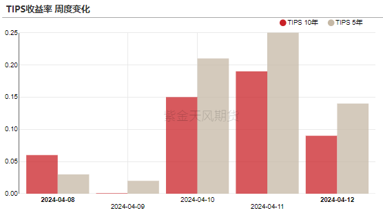5年期和10年期TIPS收益率上行,5年期TIPS收益率于周五收于2.22%,较前周上行15bps;10年期TIPS收益率于周五收于2.21%,较前周上行10bps。